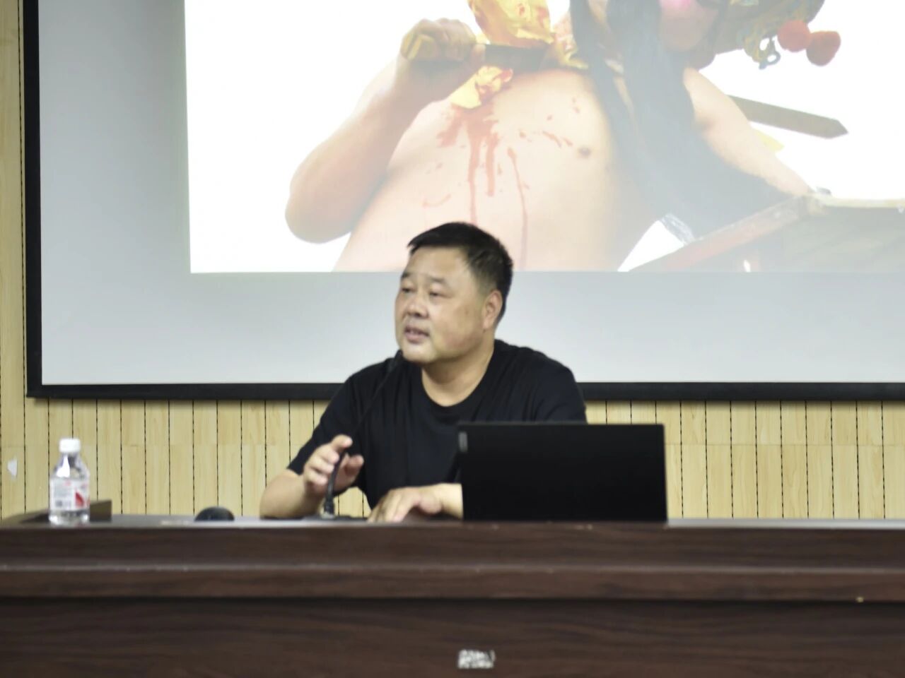 配合《五色蕴千年——陕西宝鸡社火脸谱专题展》,6月11日,我馆联合雁塔区文化和旅游体育局特邀西安美术学院硕士研究生导师、陕西省非物质文化遗产研究基地负责人、艺术人文学院非物质文化遗产保护系主任张西昌教授,开展主题为“身体表达与思想教化:对血社火民俗的一点思考”的学术讲座。讲座由美术博物馆策展研究部主任白茜主持。