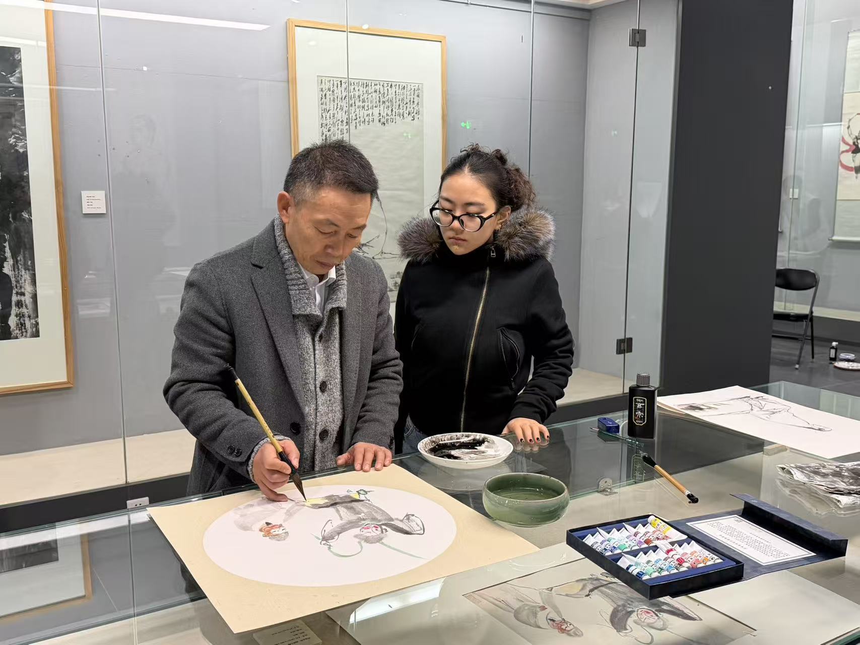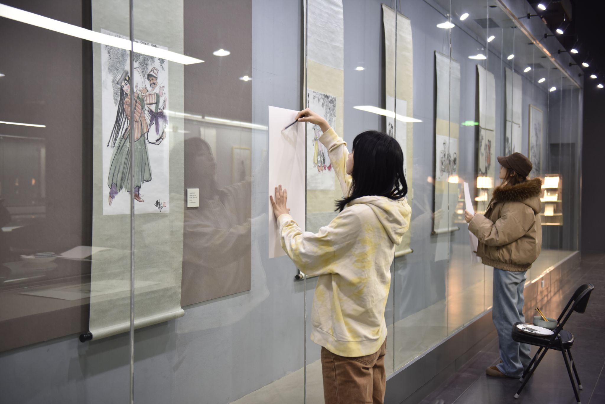 2025年11月27日,围绕“载道形神间——西安美术学院院藏人物画专题展”,美术博物馆邀请中国画学院的学子以及校外观众,将传统文化课堂搬进了展厅,进行了一堂现场临摹经典作品的教学课。